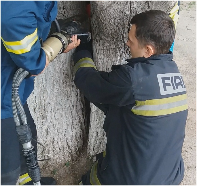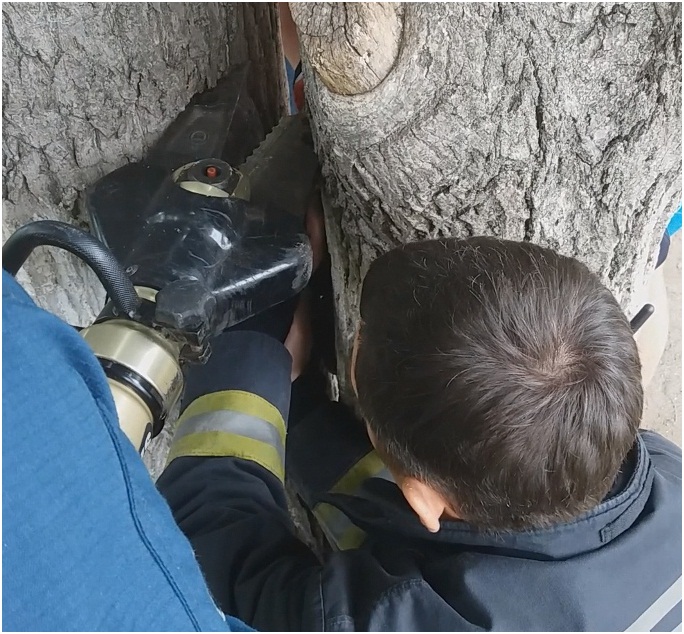 В Харькове спасатели освободили девочку, застрявшую между деревьями. Появилось видео