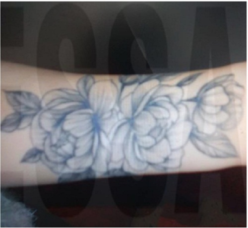 Особые приметы: на предплечье левой руки с внутренней стороны есть тутаировка в виде букета цветов (пионы), выполненная синими чернилами.