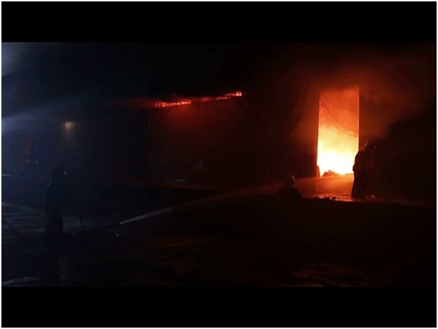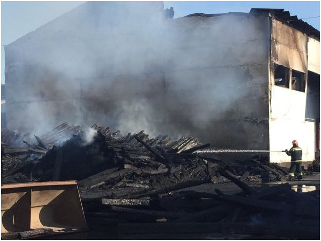 Масштабный пожар охватил 2500 квадратных метров одноэтажного здания. Полностью уничтожены огнем помещение склада площадью 1500 квадратных метров и имущество, находящееся в нем.