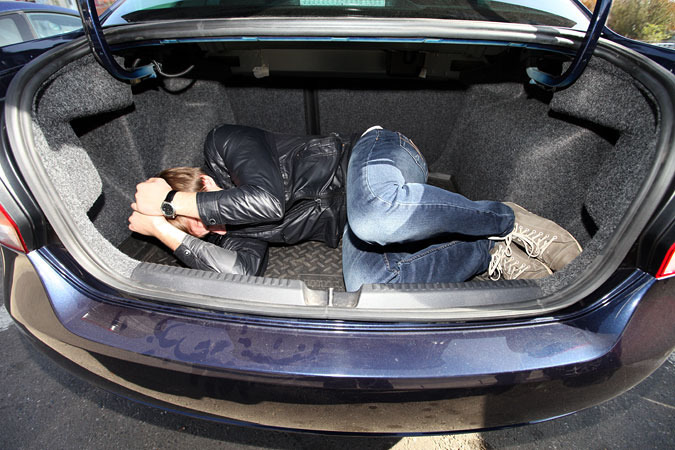 При досмотре автомобиля сотрудниками полиции в багажнике был обнаружен связанный 38-летний мужчина. Мужчина был доставлен в отделение полиции, но отказывается как-либо пояснять произошедшее.