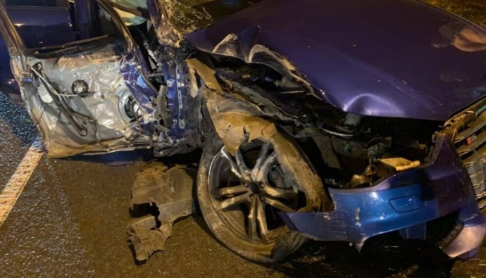 В какой-то момент времени водитель не справился с управлением, и автомобиль занесло на обочину дороги, где он врезался в дерево и бетонный столб.