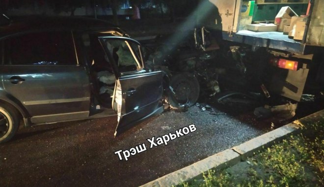 Сегодня, 05 сентября 2019 года, около 03:00 в Немышлянском районе Харькова на проспекте Петра Григоренко произошло ДТП с участием автомобиля Volkswagen и грузового автомобиля.