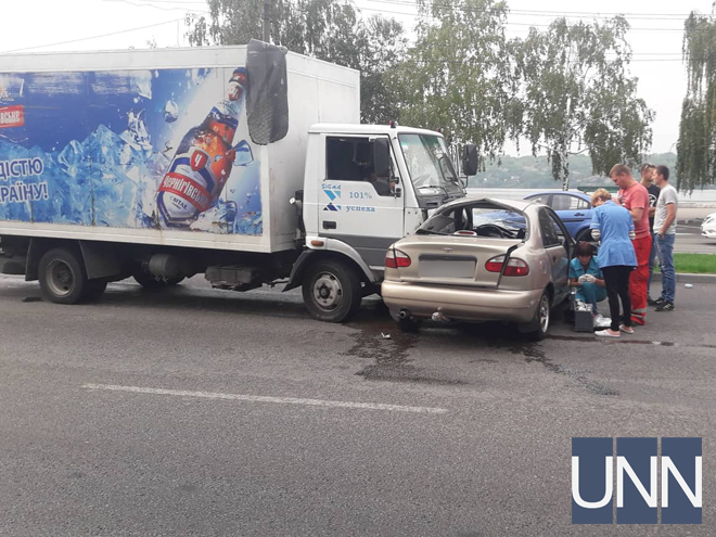 Как сообщают источники, ДТП произошло на регулируемом светофором перекрестке. Грузовой автомобиль ударил автомобиль Daewoo в бок со стороны водителя, и протащил по дороге еще около 20 метров.