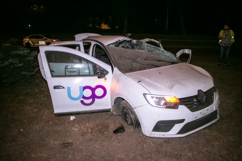 Как сообщают источники, автомобиль RenaultLogan двигался по Столичному шоссе, но перед развилкой дорог автомобиль вынесло на обочину, где он врезался в столб электроопоры и несколько раз перевернулся.