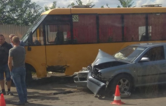 Как сообщают источники, водитель автомобиля Skoda не справился с управлением и врезался в маршрутное такси.