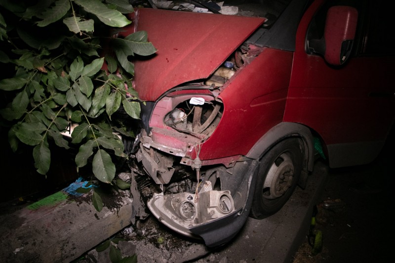 Как сообщают источники, в какой-то момент времени у микроавтобуса отказали тормоза и водитель, чтобы избежать столкновения с другими автомобилями, свернул резко вправо, в результате чего ГАЗель столкнулась с бетонным столбом электоопоры.