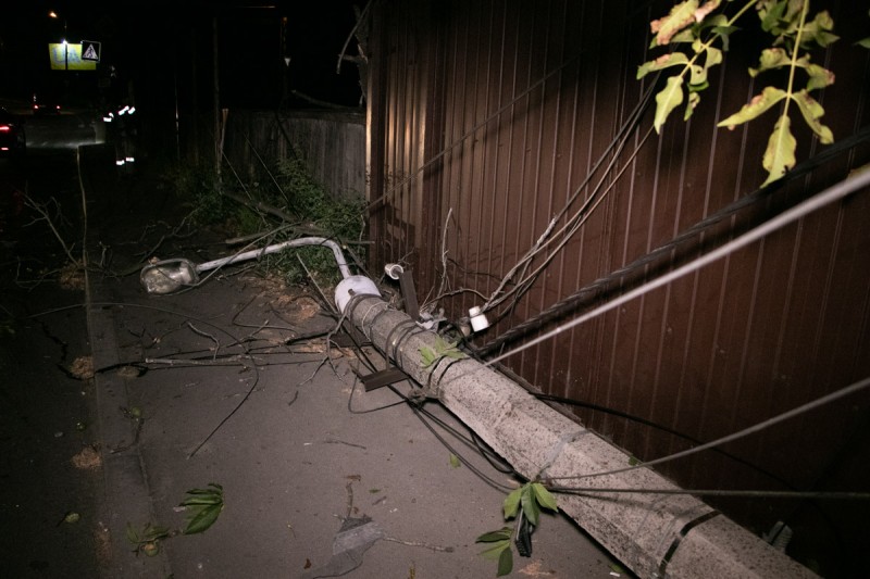 От удара столб рухнул вместе с проводами, которые находились под напряжением. Без света остались дома, прилежащие к месту ДТП.