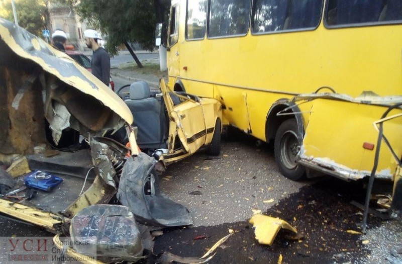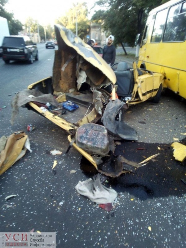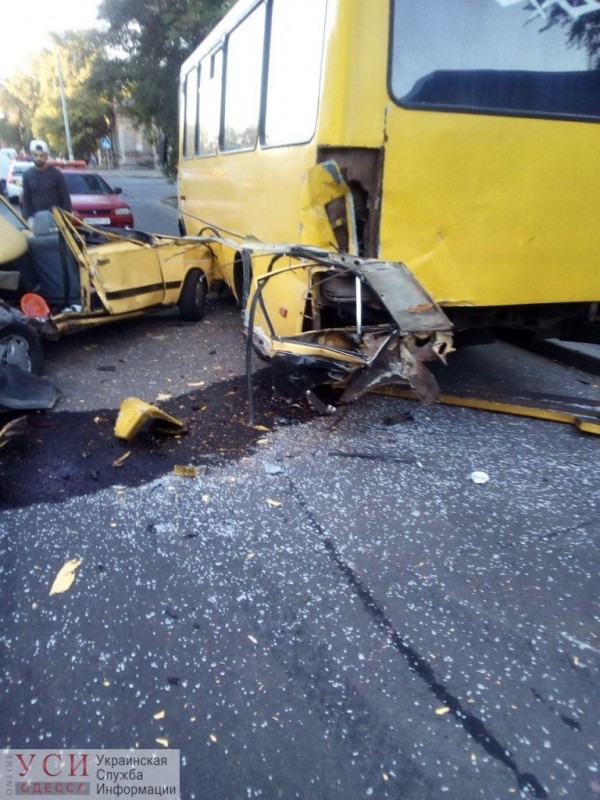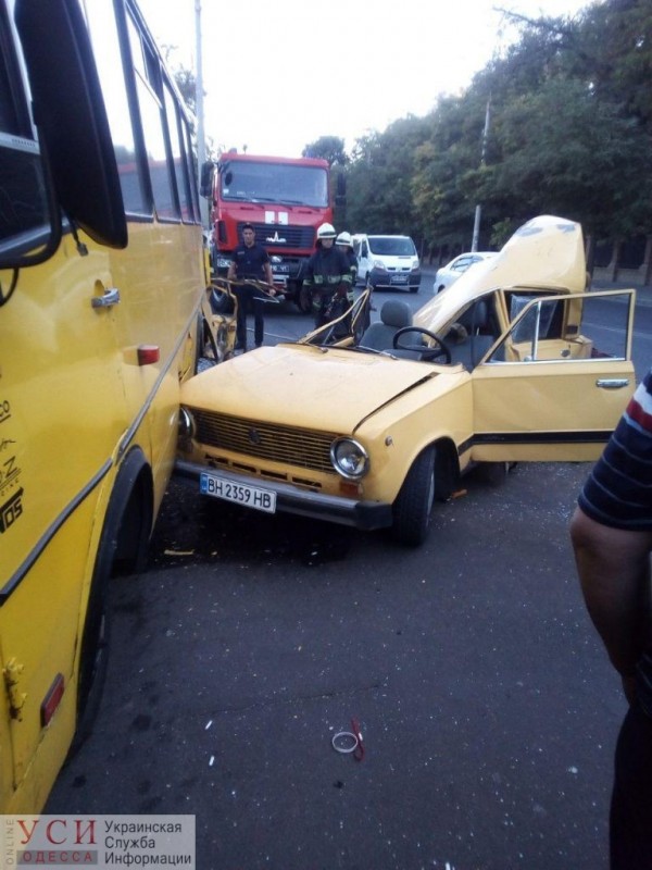 Как сообщают источники, автомобиль «Жигули» занесло на мокрой дороге. Автомобиль врезался в бордюр, после чего столкнулся с припаркованным рядом маршрутным такси.