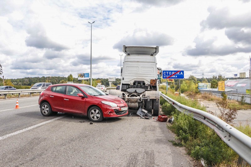 Сегодня, 20 сентября 2019 года, около 10:50 на Житомирской трассе неподалеку от села Стоянка произошло ДТП с участием автомобилей Chevrolet Lacetti, Renault Megan и тягача Mercedes.