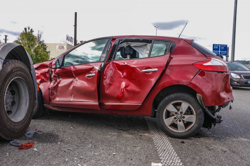 В какой-то момент легковые автомобили столкнулись, и от удара автомобиль Renault отбросило на тягач.