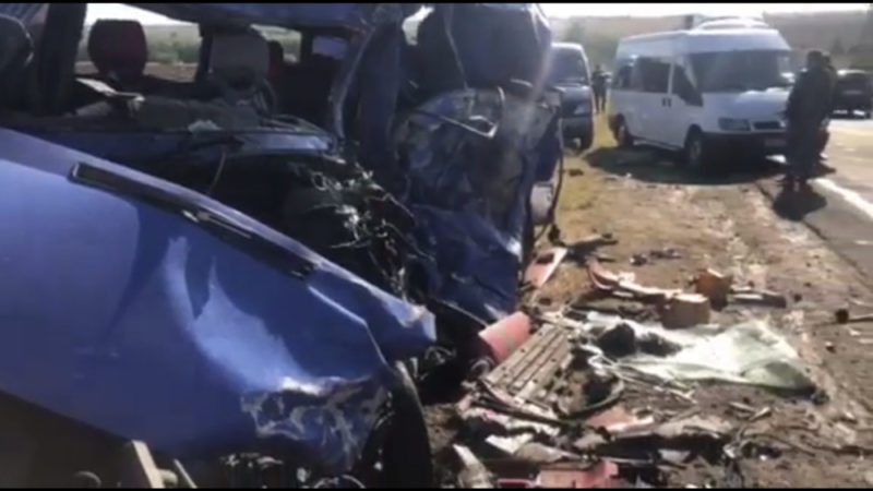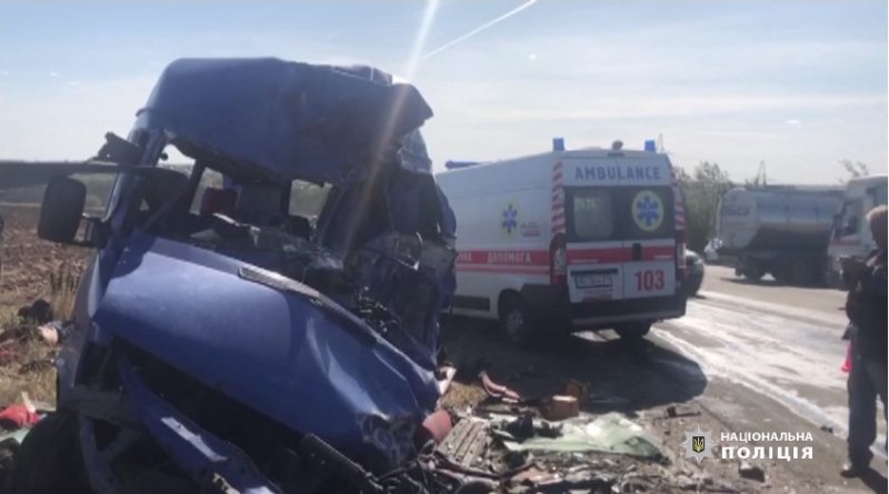 Переполненное маршрутное такси, следовавшее в Одессу, столкнулось с ехавшим навстречу бензовозом. Сила столкновения была такой, что прибывшим на место спасателям пришлось извлекать из искореженного маршрутного такси погибших и пострадавших пассажиров при помощи специального оборудования.