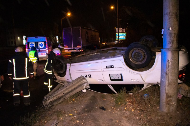 Как сообщают источники, автомобиль Nissan двигался по улице Академика Заболотного в сторону Окружной дороги. На одном из поворотов водитель не справился с управлением, из-за чего машину выбросило на тротуар, после чего она врезалась в столб и перевернулась на крышу.