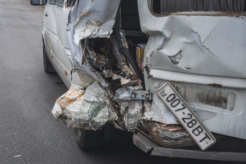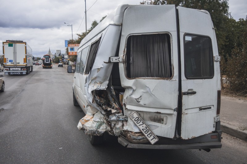 Как сообщают источники, автомобили двигались в одном направлении. Превысив скорость и не рассчитав габариты автомобилей, водитель BMW врезался в заднюю часть микроавтобуса.