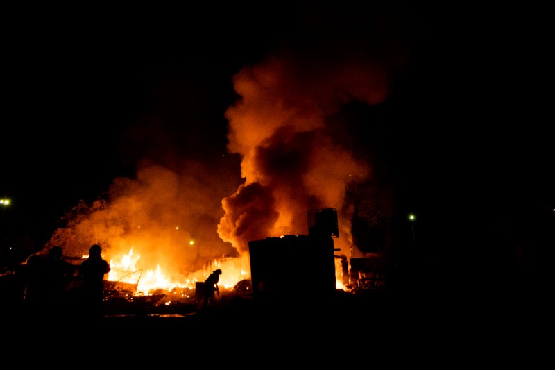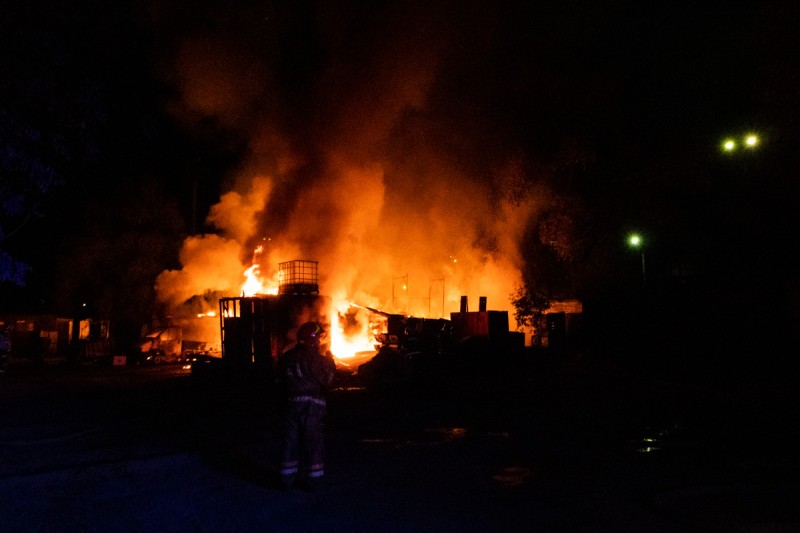 Огонь охватил одноэтажные сооружения, в которых жили рабочие, и полностью уничтожил припаркованный рядом автомобиль ГАЗель.