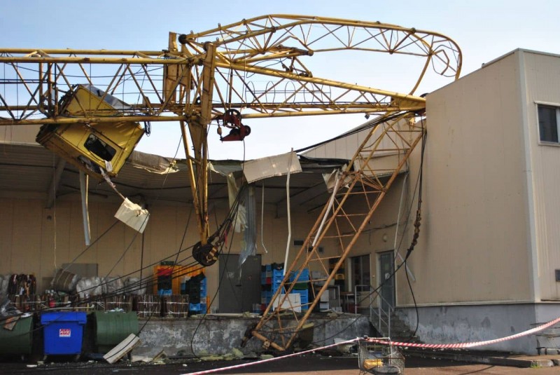 Во Львове на стройке кран упал на супермаркет. Появилось видео