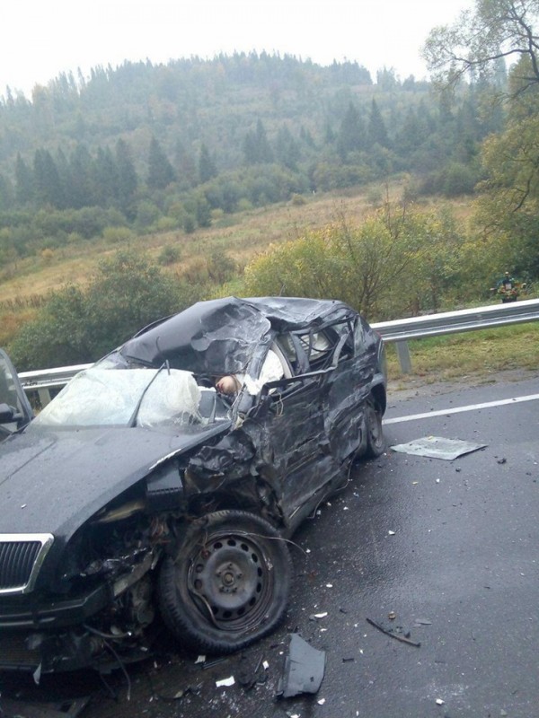 Сегодня, 27 сентября 2019 года, около 09:20 возле села Козёва Сколевского района Львовской области произошло ДТП с участием автомобиля Skoda Oktavia и грузового автомобиля Scania.