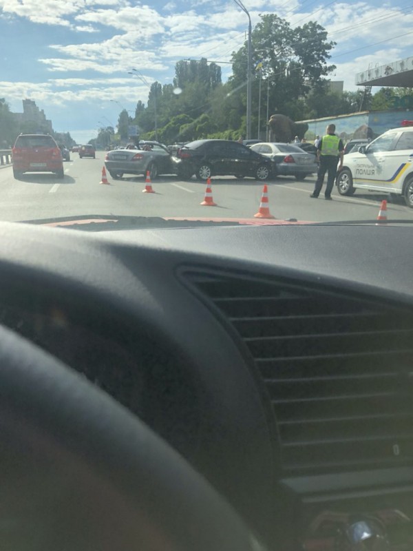 В Киеве в районе входа в зоопарк произошло ДТП. Столкнулись 3 автомобиля, один из которых мерседес–кабриолет. Из-за аварии образовалась пробка. Данных о жертвах и пострадавших пока не имеется. На месте работает полиция.