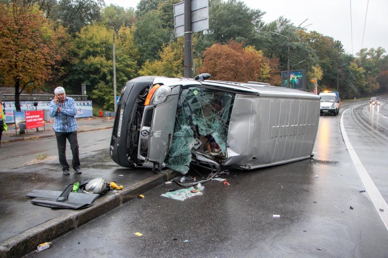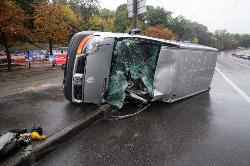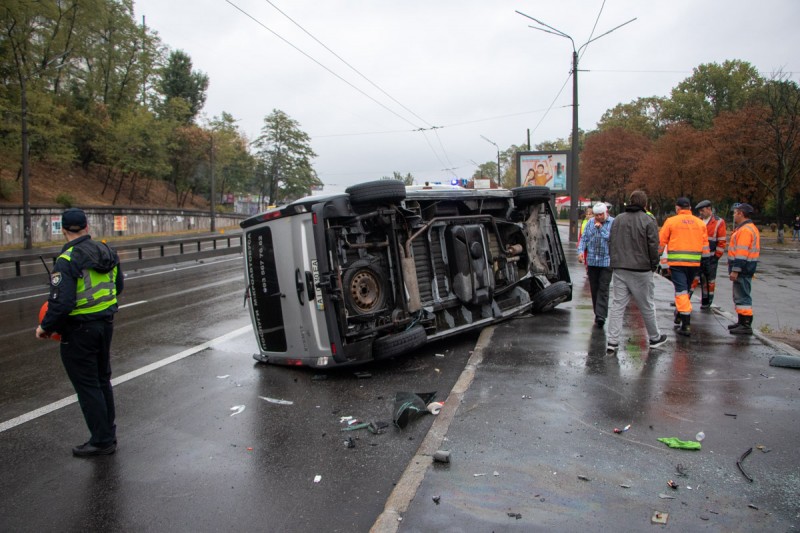 В Киеве на улице Елены Тилиги в результате ДТП перевернулся микроавтобус. Вот что стало известно изданию «Криминал».