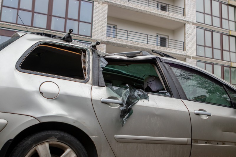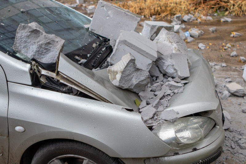 В Днепре на автомобиль упала часть стены. Появилось видео