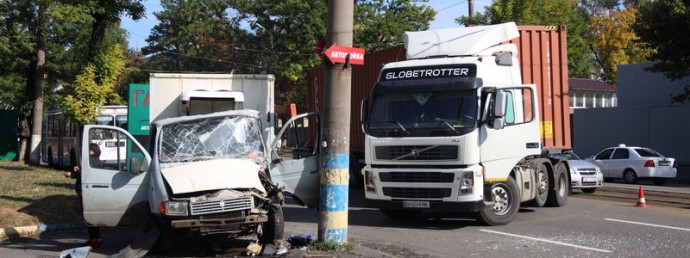 Сегодня, 30 сентября 2019 года, около 09:00 на проспекте Богдана Хмельницкого произошло ДТП с участием фуры Volvo и грузового автомобиля ГАЗель.