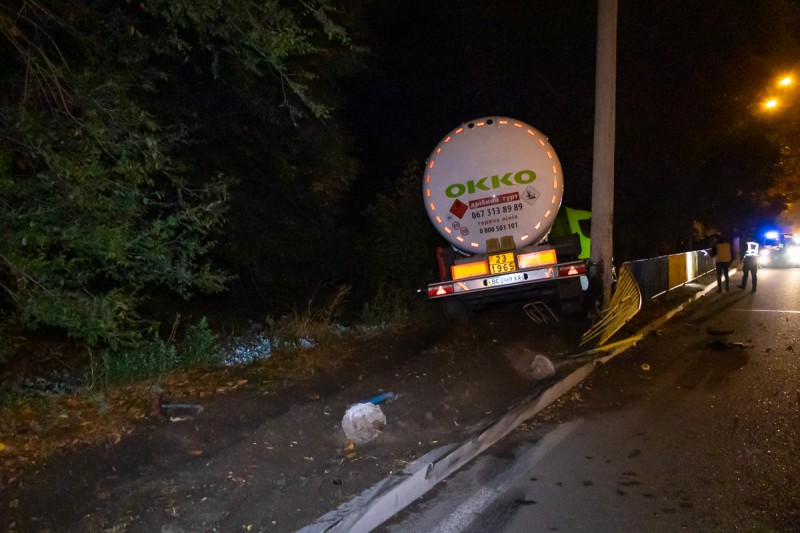 Как сообщают источники, фура с цистерной сжиженного газа пропана направлялась в сторону города. Неподалеку от жилого комплекса «Днепровская Брама» автомобиль неожиданно выехал на встречную полосу. Автомобиль пересек все полосы движения, лишь чудом не задев никого из участников дорожного движения, врезался в ограждение дороги и съехал на обочину.