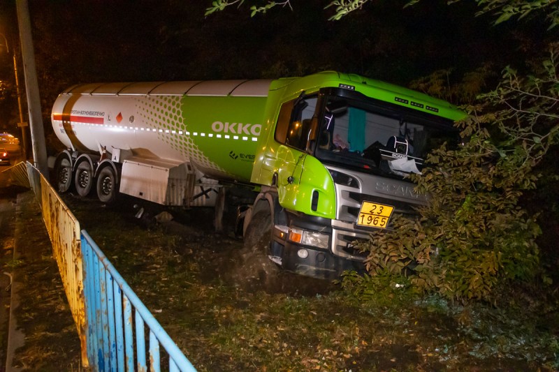 Сегодня, 02 октября 2019 года, около 02:30 на Слобожанском проспекте произошло ДТП с участием фуры-газовоза Scania компании ОККО.