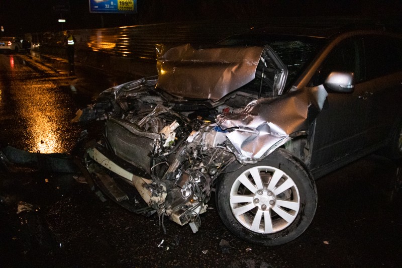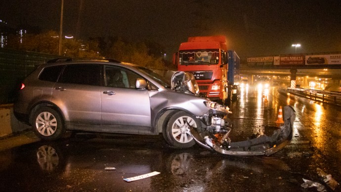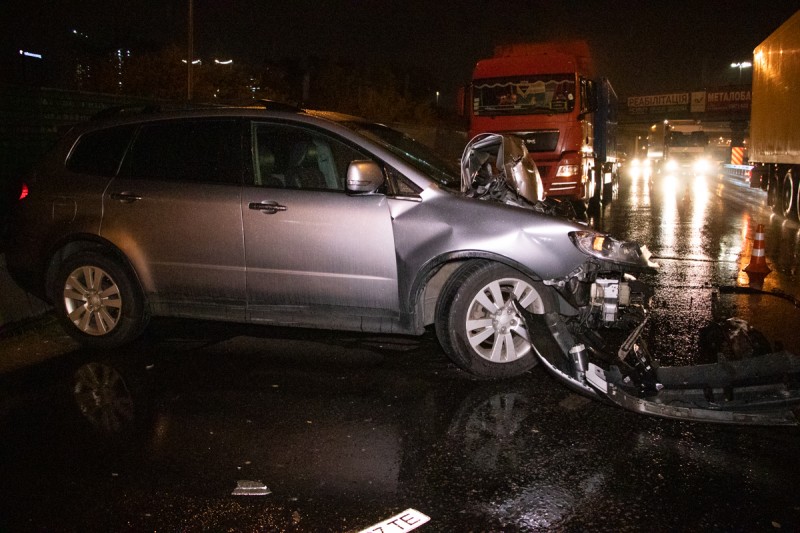 Вчера, 09 октября 2019 года, около 23:30 в районе станции метро «Выдубичи» произошло ДТП с участием грузового автомобиля MAN и автомобиля Subaru Tribeca.