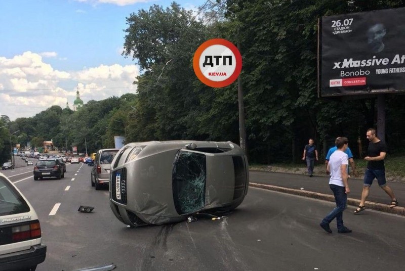 Сегодня в Киеве на улице Елены Телиги произошло серьезное ДТП в результате которого опрокинулся автомобиль Audi. Вот что стало известно изданию «Криминал»