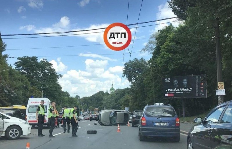 На улице Елены Телиги в Киеве опрокинулся автомобиль. Фото
