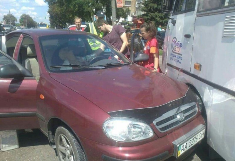 По предварительным данным водителю Dawoo Lanos стало плохо по ходу движения автомобиля. В результате автомобиль выехал на встречную полосу, а потом врезался в припаркованный автобус.