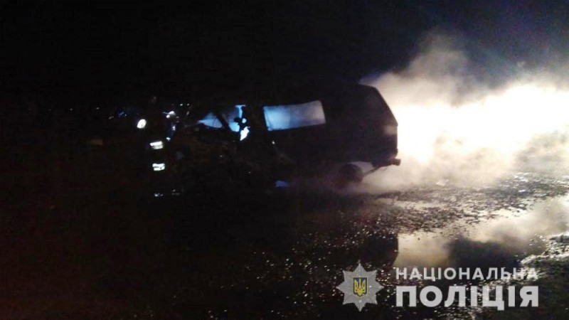 Как сообщают источники, после столкновения микроавтобус Toyota загорелся.
