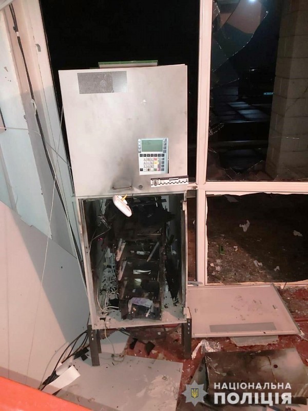 Как было установлено на месте, неизвестные взорвали банкомат при помощи самодельного взрывного устройства и похитили из него 4 кассеты с деньгами. Общая сумма похищенного составляет более 2 млн. гривен.