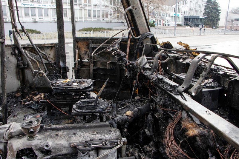 Сегодня, 01 марта 2020 года, на Соломенской площади загорелось маршрутное такси с пассажирами.