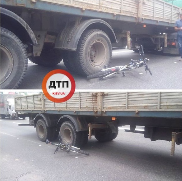 В Киеве произошло ДТП грузовика с прицепом и велосипеда