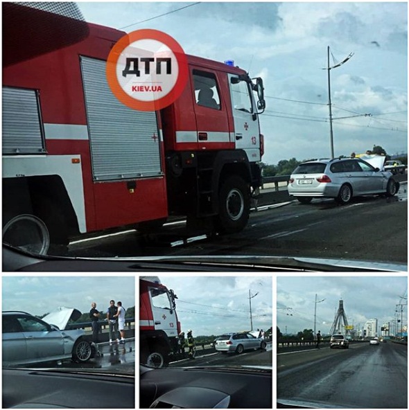 Сегодня в Киеве в утреннее время на Северном (Московском) мосту произошло столкновение автомобилей BMWи Volkswagen, разлилось масло. Вот что стало известно изданию «Криминал»