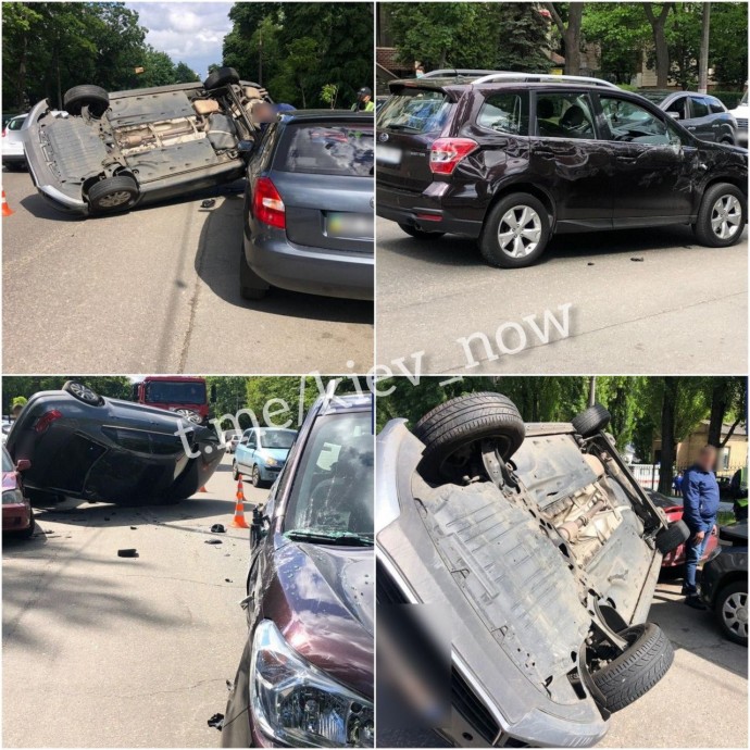 В Киеве Volkswagen протаранил три авто и перевернулся на крышу