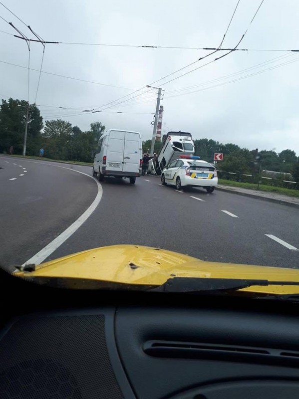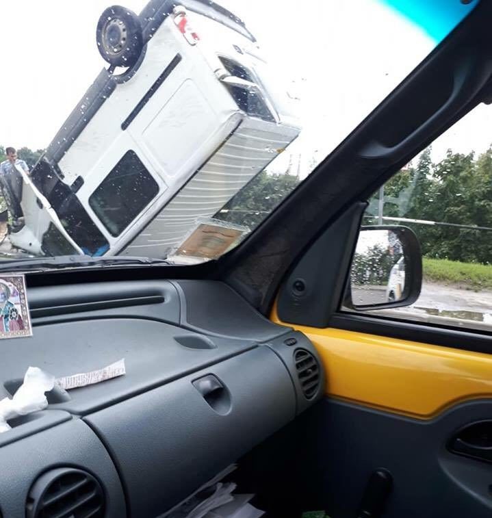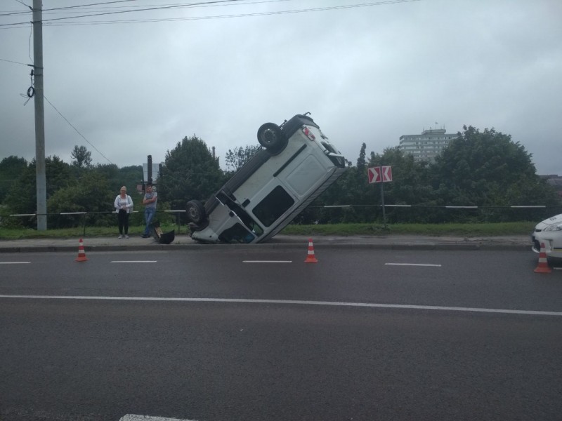 Во Львове на Сиховском мосту опрокинулся микроавтобус