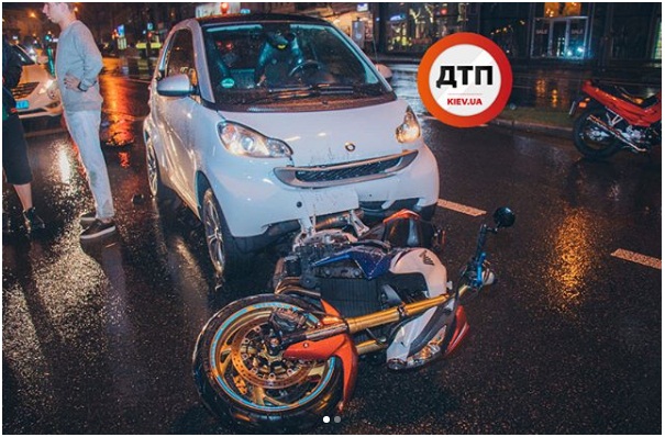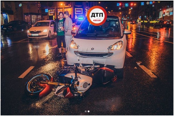 Сегодня в ночное время в Киеве на перекрестке Бассейной и Шота Руставели произошло столкновение автомобиля Smart и мотоцикла Honda. У Smart разбит бампер. Вот что стало известно изданию «Криминал»