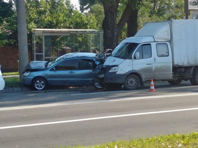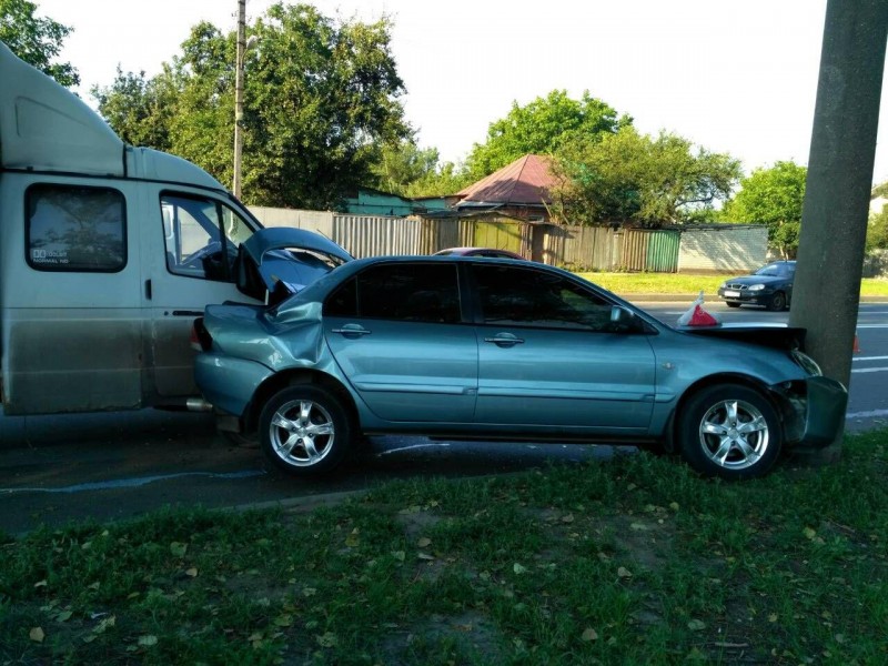 В Харькове при столкновении с Газелью легковой автомобиль врезался в столб