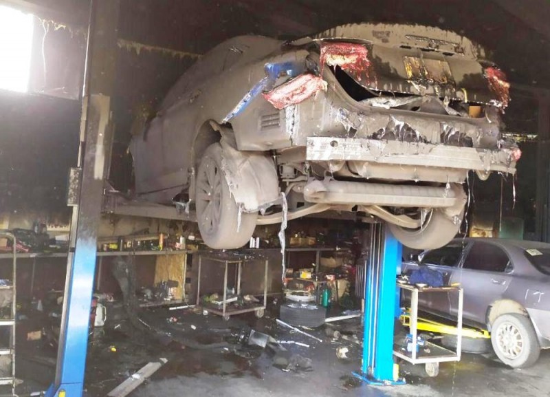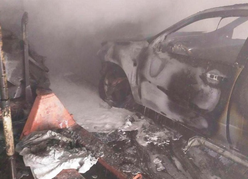 Огонь полностью уничтожил один из автомобилей, и повредил еще два. 5 автомобилей и помещение удалось спасти благодаря оперативным действиям спасателей.