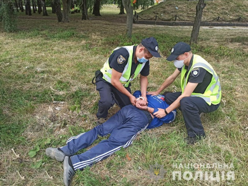 Задержать злоумышленника удалось только в Броварском районе Киевской области. Пытаясь скрыться, мужчина в окровавленной одежде сел в автомобиль знакомого и поехал в Киевскую область. По дороге мужчина не справился с управлением и съехал в кювет. После этого мужчина, работающий дальнобойщиком, попытался добраться до своего авто на стоянке в Киевской области попутным транспортом.