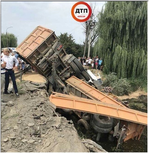 Как сообщают источники, сегодня в дневное время в городе Староконстантинове Хмельницкой области произошло ДТП в результате которого зерновоз с двумя прицепами упал с моста в реку. Причиной аварии стало лопнувшее колесо.
