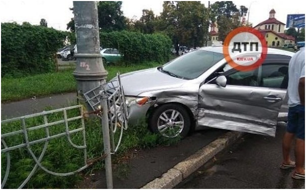 В Киеве из-за столкновения автомобиль вылетел на тротуар