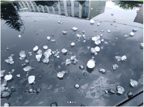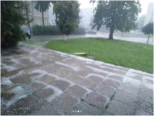 Сегодня около 17:00 в Каменке-Бугской Львовской области выпал град размером с вишню, который засыпал всё кругом и некоторое время не таял.