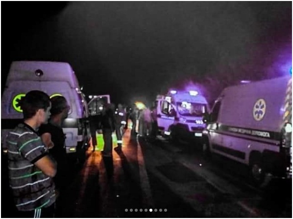 В результате столкновения, автобус слетел в кювет и перевернулся на правую сторону. По предварительным данным в аварии пострадали 12 человек, один из которых находится в тяжелом состоянии.