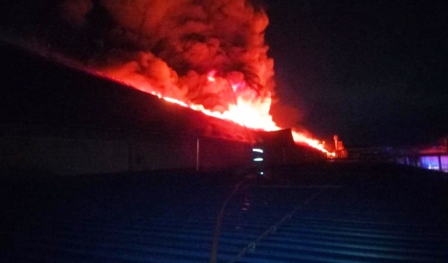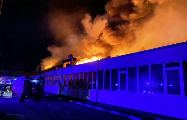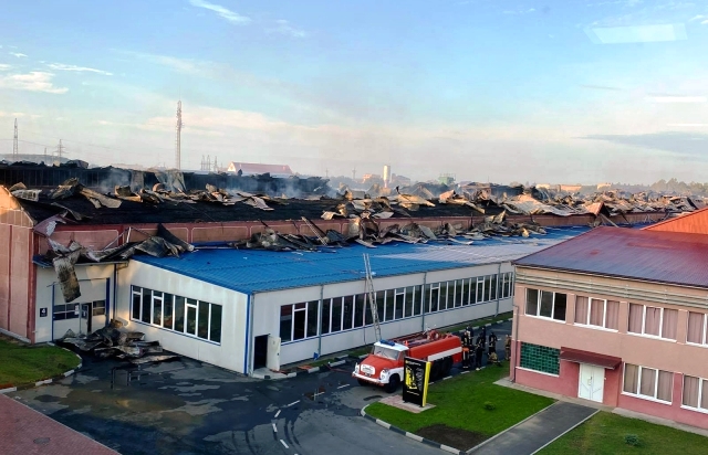 Как сообщают источники, прибывшие на место происшествия спасатели установили, что пожар охватил кровлю одноэтажного производственного цеха со складским помещением. Общая площадь постройки составляет 20 000 кв.м.