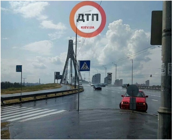 В Киеве водитель не справился с управлением на мокрой дороге и протаранил дорожный знак. Вот что стало известно изданию «Криминал»