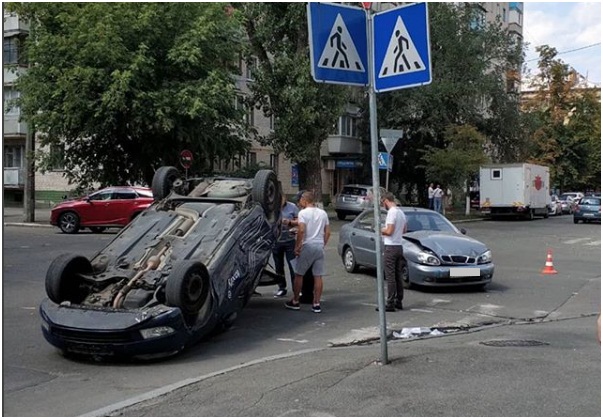 Сегодня в Киеве автомобиль Skoda нарушил правила, столкнулся с другим автомобилем и опрокинулся. Вот что стало известно изданию «Криминал»