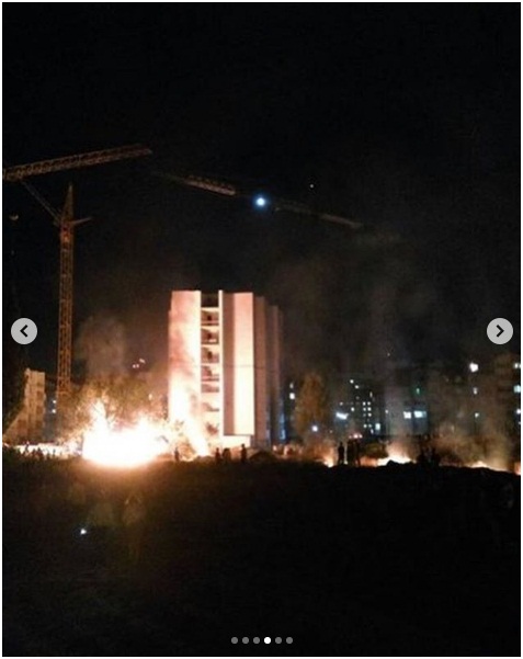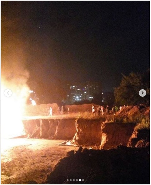 Как сообщают источники, ночью жители города Вишневое Киево-Святошинского района, в знак протеста против строительства многоэтажки в местном парке снесли и сожгли забор. Началось всё с того, что несколько сотен горожан собрались около стройплощадки, доказывая, что строительство оспорено в суде. Однако охрана попробовала применить к протестующим газовые баллончики. После этого возмущенные люди снесли забор и начали его сжигать.