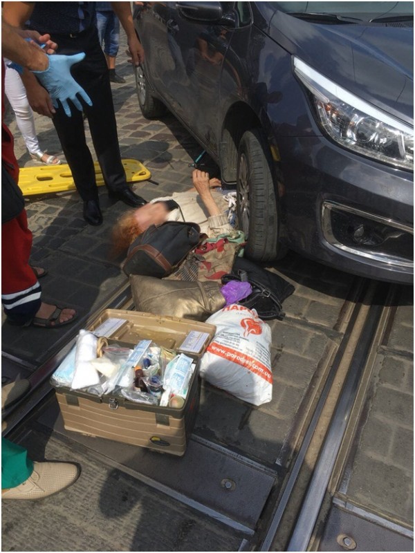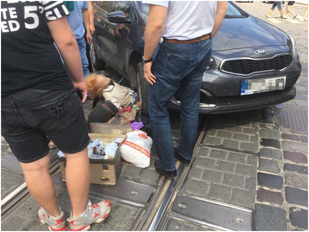 Появилось видео ДТП во Львове. Женщину вытаскивают из-под колес авто